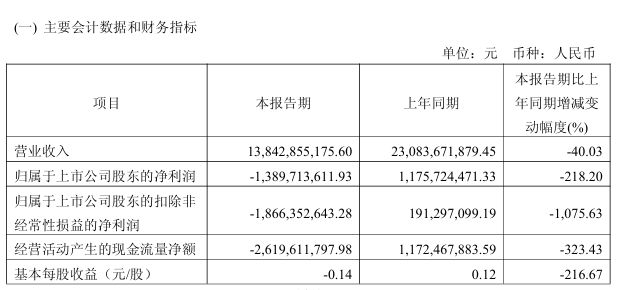 根据一季度报告,公司实现营业收入约138亿元,同比下降约40%;归属母公司股东的净利润为亏损13.9亿元,扣除非经常性损益的净利润为亏损18.66亿元。一季度亏损,这是晶科能源近年来的首次。